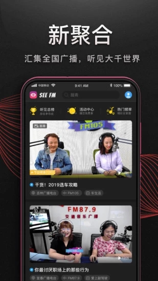 听见广播app是一款新颖有趣的广播节目可视化直播APP,由北京中广创思文化传播有限公司打造。该软件界面清爽,操作简单,用户可以一键看最新的娱乐资讯,超多年轻人最爱的话题都在这里哟,同时很多生活娱乐节目等你体验,一边看一边听广播,超多板块等你体验。除此之外,软件方位展现主持人生活化直播,实现一键连线面对面互动直播,玩转多向体验,有效帮助用户尽情观看有趣的直播。同时软件汇聚了国内知名的广播,在手机上任意选择一个播放内容,海量的播放资源,每天都能免费收听,享受全新的播放方式。内置了有质感更有格调的专业广播主持人,按时互动的自制直播节目24小时播不停,有需求的用户可在此点击下载!