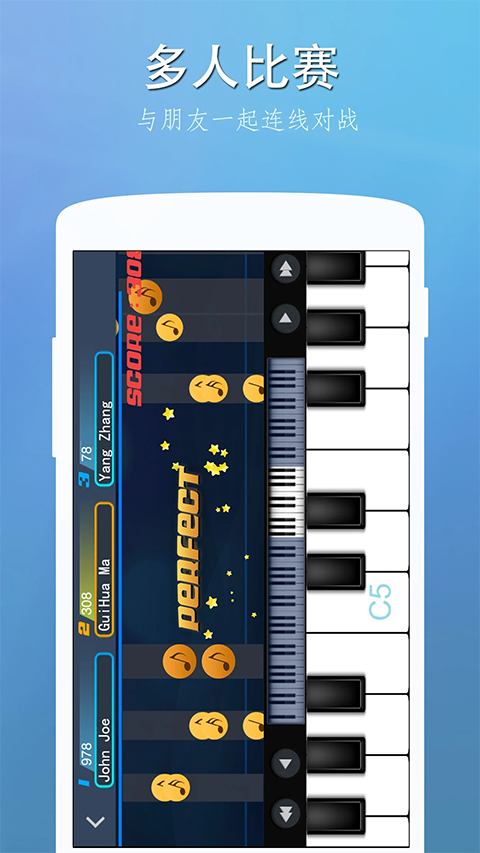 完美钢琴App与传统弹奏应用相比,最大的亮点就是融入了社交玩法,玩家在此不仅可以弹奏自己喜欢的各种歌曲,还可以选择友好的比赛模式,其中玩家可以选择单排模式、双排模式以及双人对弹模式,在音效方面支持钢琴、八音盒、风琴、电子琴、音乐合成器等。