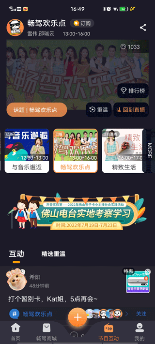 1、打开佛山电台畅驾app最新版,在首页,点击“节目互动”界面。