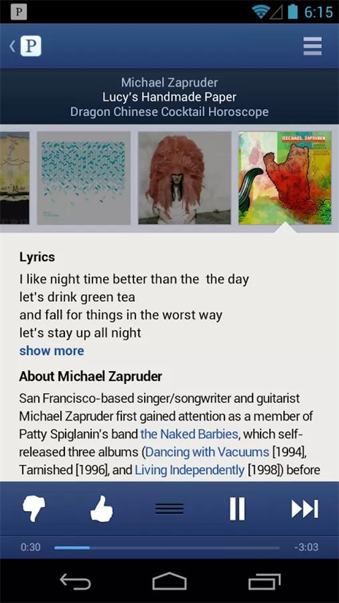 Pandora音乐App是一款功能强大的音乐电台APP,基于最新的互联网技术,采用先进的流媒体服务器技术,为用户提供海量高质量的音乐服务。件界面采用了全新的设计理念,流畅的操作体验,让你用得舒服。软件功能强大,可以根据用户喜欢的音乐风格,艺术家或者是音乐流派,创建适合用户的电台。并且,软件还可以根据用户的搜索频率或者是浏览记录,找到适合大家心情或者是活动的电台。另外,软件涵盖时下最热门的音乐分类,从说唱、流行到摇滚和乡村音乐,为你推荐适合自己的音乐频道。自由的DIY功能,用户可以在这里,制定专属于自己的音乐分类,享受自己的个性化音乐体验,所以大家还在等什么,感兴趣的小伙伴赶快来下载体验吧。