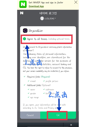 1、进入Beyond LIVE登录页面,软件共提供了多种方式进行登录,这里小编以Naver为例