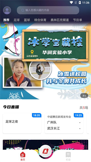 1、首先我们进入央视体育直播CCTV5手机客户端当中,然后点击中间的logo;