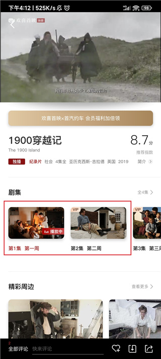 5、选择首页底部的“纪录片”,我们再任意选择一个纪录片,以《1900穿越记》为例;