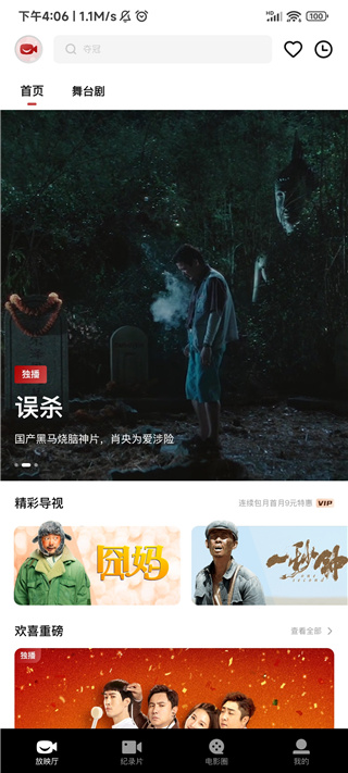 3、首映厅:首发新电影,更有全网独播影片。