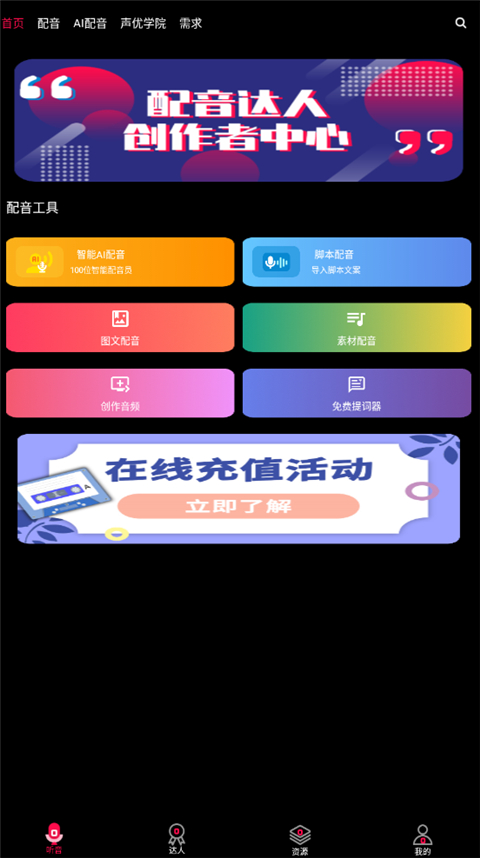 【需求定制】依据内容属性,可以即时找配音达人定制,交易全开放,平台全免费。
