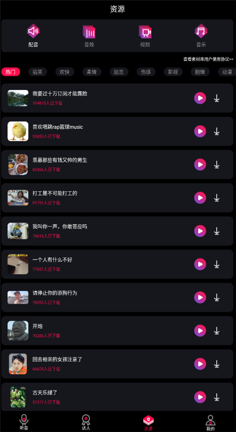 2、您可以在app提供的素材专区,快速的预览素材内容